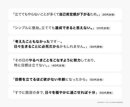 そこで10 Inc.では、生活者が新年の目標をどのように捉え、それが一年の満足度にどのような影響を与えているのかを明らかにするため、本調査を実施しました。