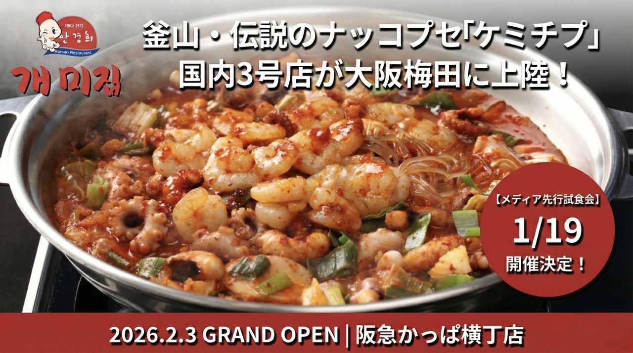「グランドオープン日・コンセプト正式発表」韓国・釜山の伝説「ケミチプの国内3号店目」が大阪梅田へ「メディア向け先行試食会への招待開始」 -