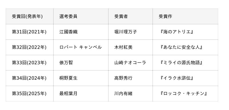 近年の選考委員・受賞者・受賞作