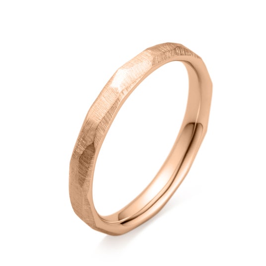 金に銅や亜鉛を加え、絶妙なピンク色を表現したピンクゴールド。やわらかで優しい印象なので、幅が広く重厚感のあるリングデザインなどを、より軽やかな印象で身に着けたい時にもおすすめです。