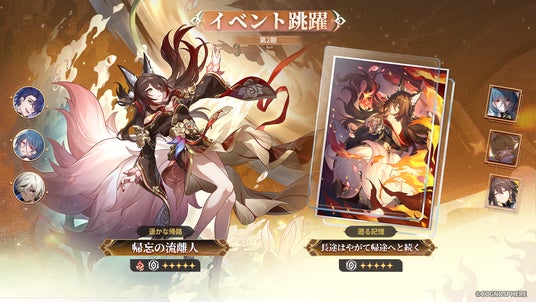 また、同時開催のイベント跳躍・光円錐「遡る記憶」では、限定星5光円錐「長途はやがて帰途へと続く」の出現率がアップ!