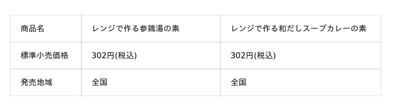 ヤマキ株式会社(本社:愛媛県伊予市 代表取締役社長:城戸善浩 以下ヤマキ)は、電子レンジ専用調味料『楽チン屋(R)』シリーズの第二弾として、「レンジで作る参鶏湯の素」「レンジで作る和だしスープカレーの素」の2品を発売します。具材を入れて電子レンジで加熱するだけで手作り感と食べ応えのある本格的なスープを簡単に作ることができる新商品です。