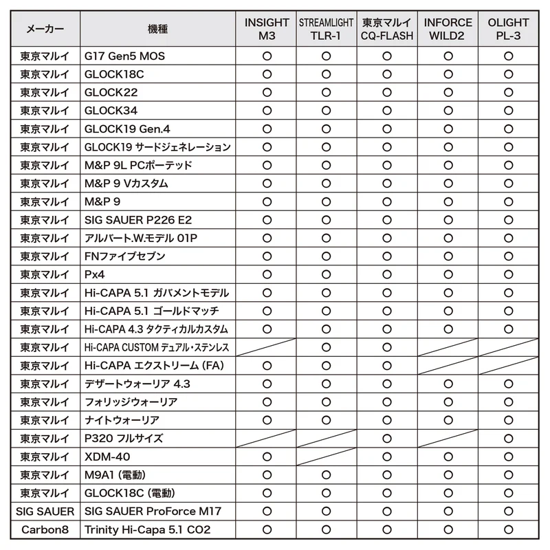 ■ LUX対応機種・対応ライト・光学機器一覧