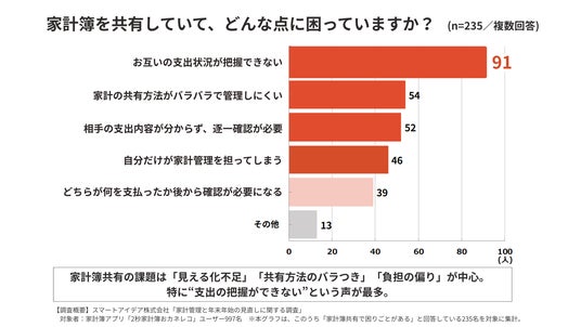 1位:お互いの支出状況が把握できない(91名)