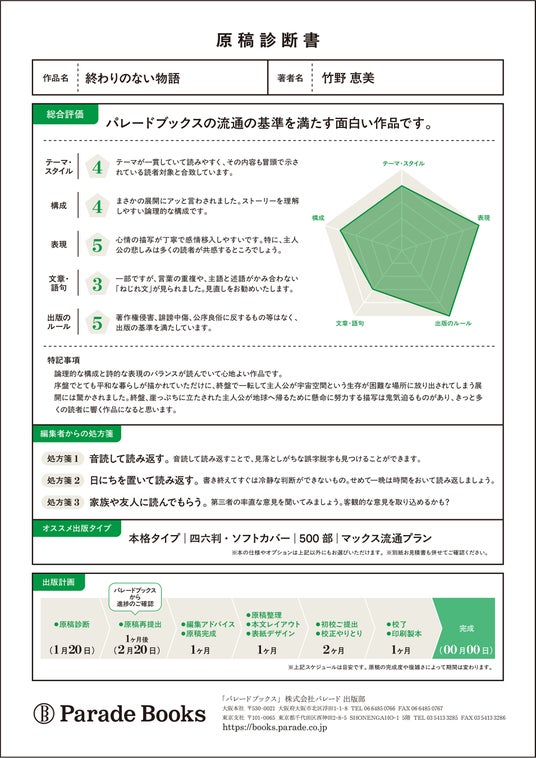 特典1 あなただけの原稿診断書イチ推し特典は、パレードブックスオリジナルの原稿診断書!