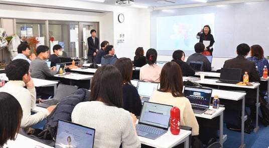 いけばな草月流家元・勅使河原茜(一般財団法人草月会 理事長・草月流第四代家元)が、2025年12月9日、京都大学経営管理大学院「日本の伝統文化とグローバルリーダーシップ講座」にて講義を行いました。草月流の歴史や、創流以来大切にしてきた創造の考え方を中心に語り、いけばなのデモンストレーションを交えながら、伝統文化の現場で培われてきた思想を紹介しました。第一線で活躍するビジネスパーソンが受講する本講座において、受講生それぞれが自身の立場から考えるきっかけとなる講義となりました。