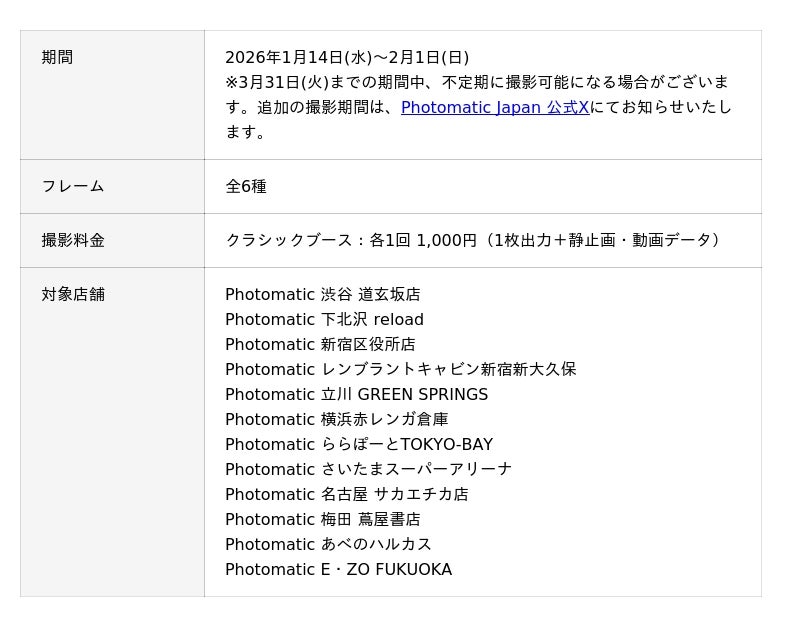 2026年1月14日(水)から全国12カ所のフォトブースで撮影可能