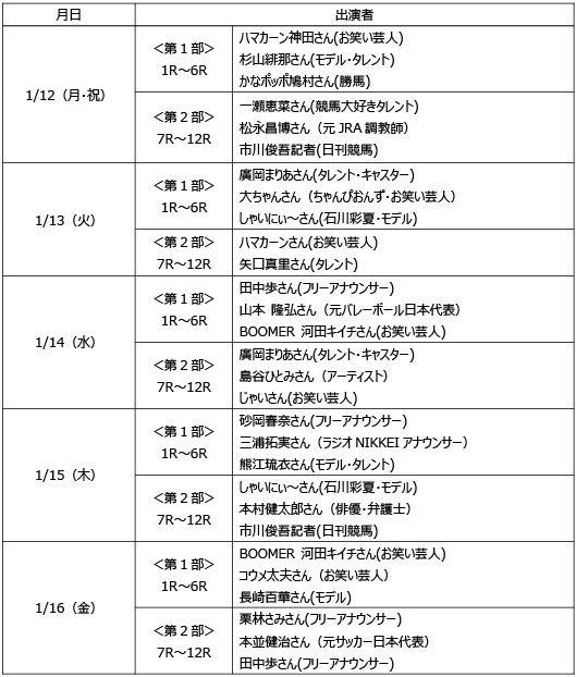 そのほか、1月12日(月・祝)には、元JRA調教師の松永昌博さん、1月14日(水)には元バレーボール日本代表の山本隆弘さん、1月15日(木)には、俳優・弁護士の本村健太郎さんが初出演!今年も連日豪華ゲストでお届けする「ウマきゅん」をどうぞご覧ください!