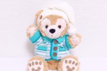 パジャマを着て可愛いポーズのダッフィーの画像が4枚。