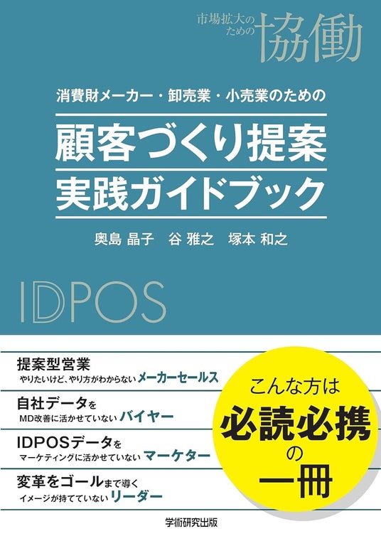 株式会社マーケティング研究協会 取締役 塚本和之、顧問 谷 雅之はジェイビートゥビー株式会社 代表取締役社長 奥島晶子氏と共著で「消費財メーカー・卸売業・小売業のための顧客づくり提案 実践ガイドブック ~顧客づくりを目的とした、提案のつくり方 IDPOSデータ活用法 営業スキル強化・組織変革のガイド~」(学術研究出版)を出版いたしました。