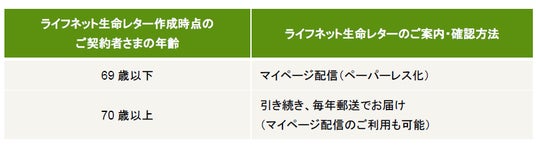 なお、当社は、ご契約者さま一人ひとりのご希望やご年齢などの状態に寄り添った対応を大切に考えております。引き続き、封書での「ライフネット生命レター」をご希望されるご契約者さまは、マイページ*1からお手続きいただくことで従来どおり、郵送にてお受け取りいただけます。