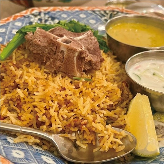 京都からやってきた「日本三大ビリヤニ」の一角。羽毛のようにふんわり炊き上がったバスマティライスに鯛出汁の旨味や旬食材を組み合わせた「京風創作ビリヤニ」が人気です。