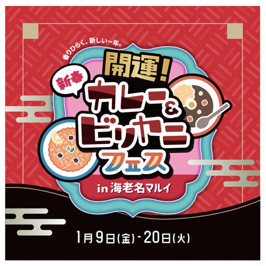 海老名マルイ(株式会社丸井、本社:東京都中野区、代表取締役社長:青野 真博)1Fにて、「ポケットカレー」プロデュースのカレーイベント『開運!新春カレー&ビリヤニフェス in 海老名マルイ』を開催いたします。
