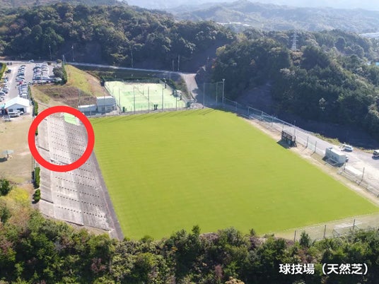 観戦場所:上富田スポーツセンター内の球技場(※下記図の赤丸付近へお越しください)