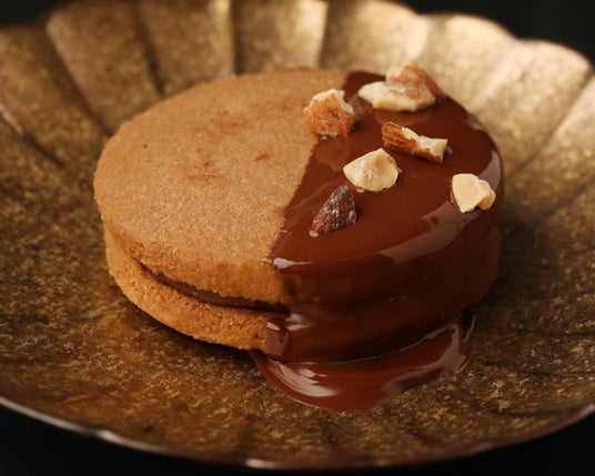 チョコレートペーストを練りこんだ“サクほろ食感”のサブレに、まろやかな味わいの静岡県河津町の「満月の塩」を使ったキャラメル・サレガナッシュを贅沢にサンドし、チョコレートをディップして仕上げます。