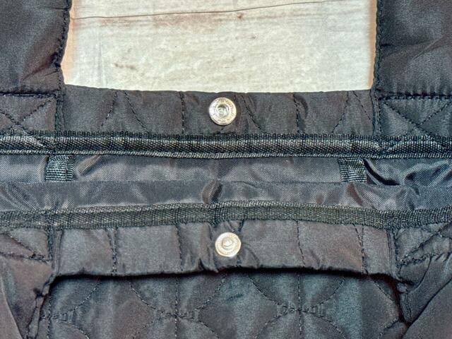 開口部には、スナップボタン付きで中身が飛び出したり落ちたりすることがなく、安心して持てるのも◎。