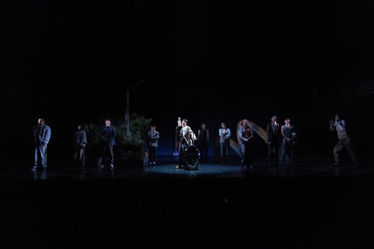 成井が「いつでもどこでも上演可能な芝居」をコンセプトに作ったという言葉の通り、西本の演出においても大掛かりなセットはなく、役者たちの芝居と小道具によって観るものの想像を膨らませるような作りだ。