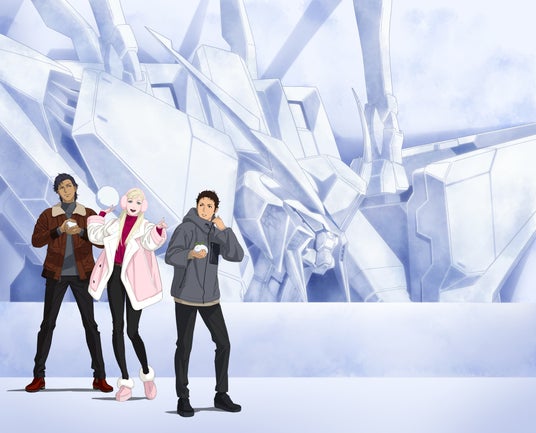 つどーむ会場では、「ガンダムスペシャルブース」を出展いたします。ガンダムを通じたリサイクル活動である「ガンダムR(リサイクル)作戦」を実施する他、冬の装いになって雪像を楽しむハサウェイ、ギギ、ケネスを描いた描き下ろしビジュアルを使用したフォトスポットも設置いたします。