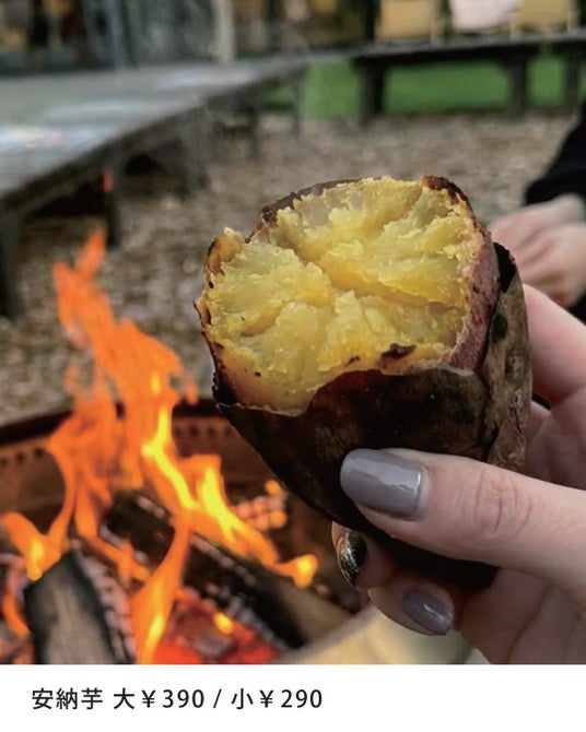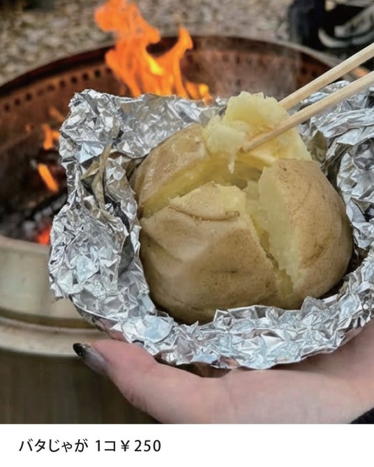 外は香ばしく、中はとろ~り。焚火定番の人気メニューから、冬にうれしいほくほくグルメまで、すべて焚火で楽しめるメニューをご用意しています。