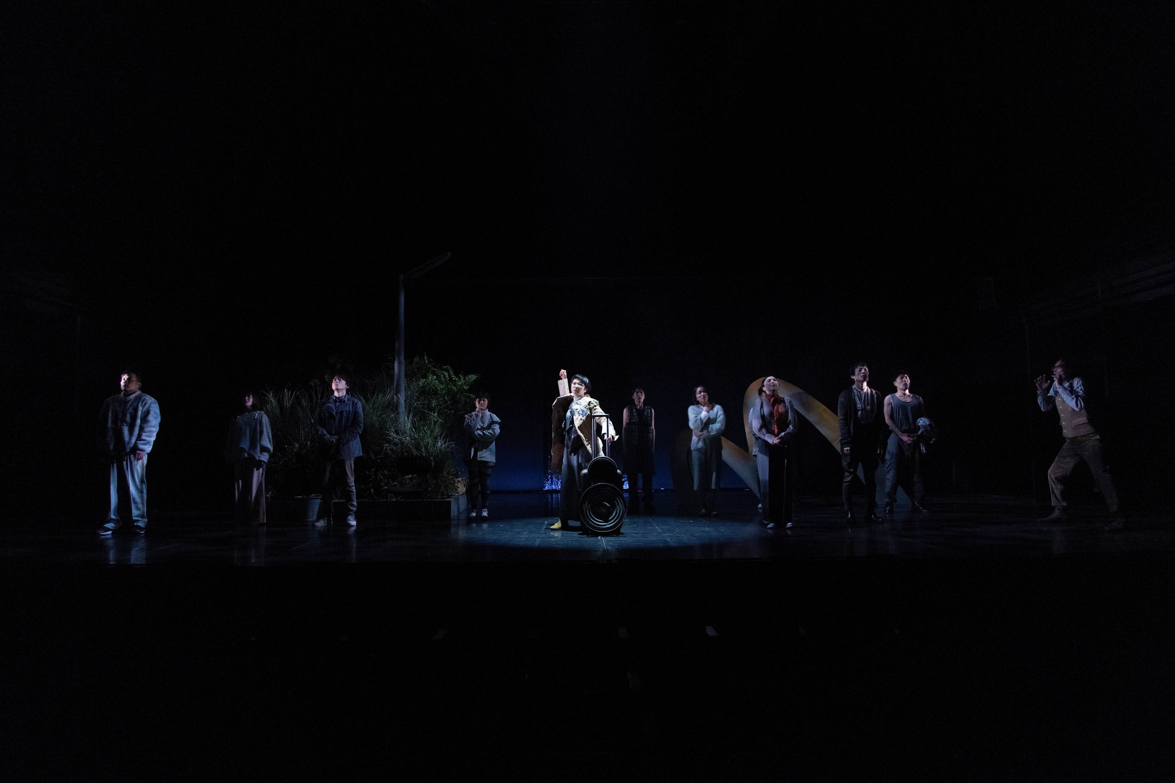 成井が「いつでもどこでも上演可能な芝居」をコンセプトに作ったという言葉の通り、西本の演出においても大掛かりなセットはなく、役者たちの芝居と小道具によって観るものの想像を膨らませるような作りだ。