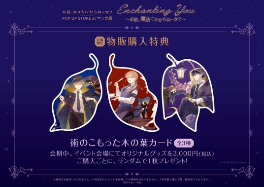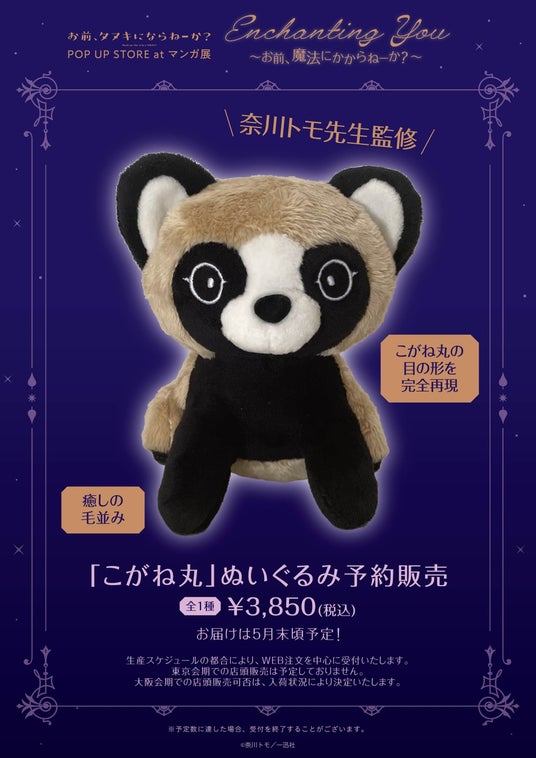 株式会社TORICO(本社:東京都千代田区、代表取締役社長:安藤拓郎)は、『お前、タヌキにならねーか?』POP UP STORE「Enchanting You ~お前、魔法にかからねーか?~」を2026年1月23日(金)から2月11日(水・祝)まで同社が運営する東京・渋谷の「マンガ展 渋谷」にて、また2026年4月3日(金)から4月19日(日)まで大阪・天王寺の「マンガ展 天王寺」にて開催いたします。