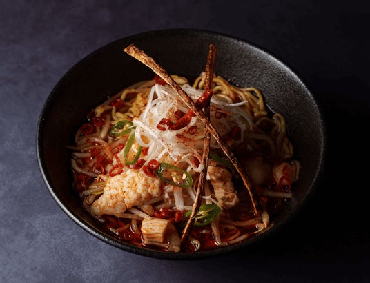 醤油ベースのスープに、唐辛子と麻辣醤(マーラージャン)の辛みと香りを重ね、奥深い味わいに仕上げました。牛ホルモンの旨みがスープにじんわり溶け込み、汗ばむほどの刺激が芯まで突き抜ける一杯です。