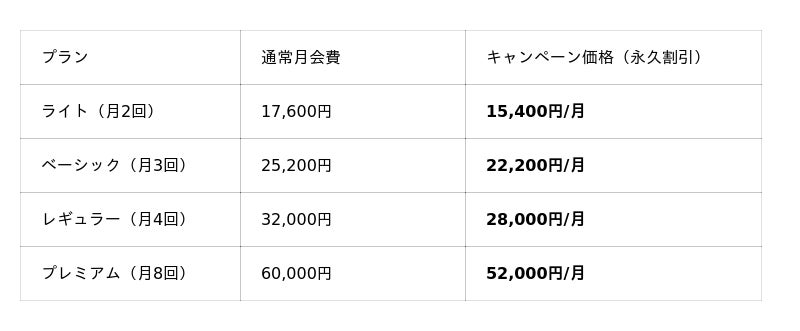 - 月会費永久割引: 最大毎月8,000円が永久に割引となります。