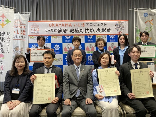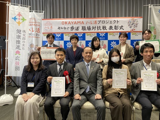 岡山市健康ポイント事業「OKAYAMAハレ活プロジェクト」の企業対抗企画の上位企業を岡山市長が表彰