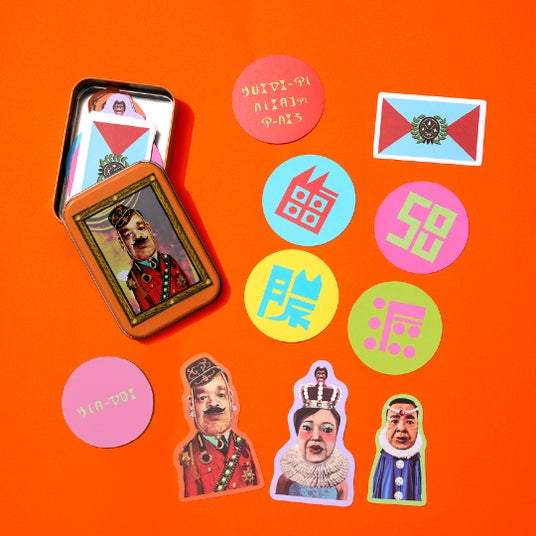 今回のコラボレーションは、お笑い芸人・野性爆弾として活動するとともにアーティストとしても高い評価を受けるくっきー!さん考案の『架空の国“シターゴ王国”のおみやげ屋』をテーマに、くっきー!さんワールド全開のグッズが盛りだくさん!コラボレーションのために書き下ろされた、シターゴ王家の「ズガーイ国王」「ビティ王妃」「アーバラ王子」がデザインされたアイテムを中心に、この国独自の文字を用いた缶バッジやトートバッグ、こだわりの詰まった麻雀セットも登場します!