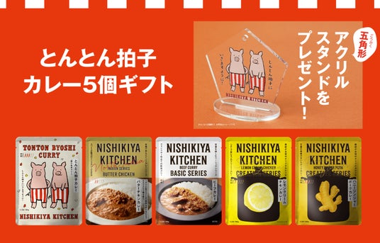 「世界の料理を『カンタン』に。」をコンセプトに掲げ、レトルトカレーを中心に約120種類のレトルト食品を販売する専門店NISHIKIYA KITCHEN(ニシキヤキッチン)(株式会社にしき食品 本社:宮城県岩沼市、代表取締役社長:菊池洋一)は、2026年1月8日(木)に、受験生をはじめとした頑張る人を応援する「とんとん拍子カレー」を数量限定で発売します。「とん(豚)とん(豚)拍子にいきますように」とカレーに想いを込めました。受験や就職活動などを控えた方々に寄り添うお守りカレーとして、大事な日の勝負メシにはもちろん応援の気持ちを贈るギフトにもおすすめです。ニシキヤキッチン公式オンラインショップと実店舗限定で、「とんとん拍子カレー5個ギフト」を購入のお客様に縁起のいい五角形(合格)の「オリジナルアクリルスタンド(非売品)」を数量限定でプレゼントします。