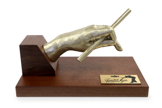 試合時の緊張感あふれる姿をリアルに金属化しました。皺の一本一本、指先の力の入り方まで、まるで本人の手が目の前にあるかのような仕上がりです。ビリヤードファンに向けたコレクターズアイテム。