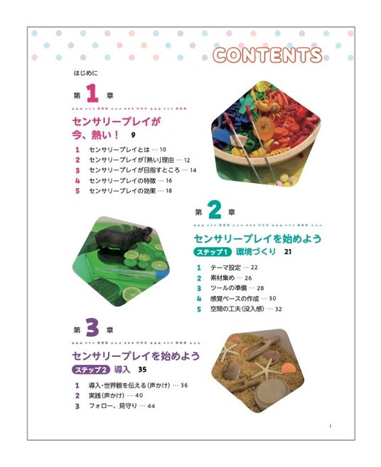 あそび「センサリープレイ」を、園と家庭の双方で体系的に学び、実践できる一冊となっ