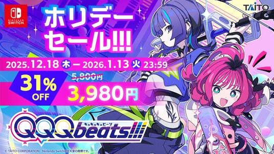 株式会社タイトー(本社:東京都新宿区、以下タイトー)は、Nintendo Switch(TM)ダウンロード専用ソフト『QQQbeats!!!』(読み:キュキュキュビーツ)の追加ダウンロードコンテンツ「VTuberソングパック Vol.1」の配信をニンテンドーeショップにて本日1月8日(木)に開始いたしました。
