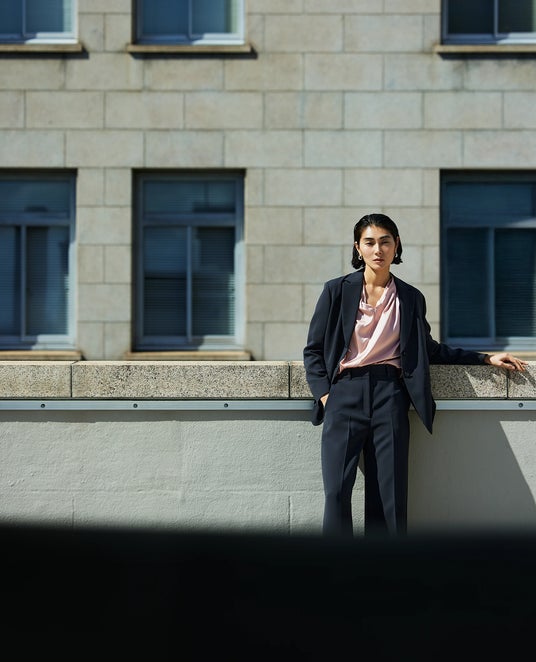 Jacket / ¥33,000 / Ballsey Blouse / ¥29,700 / TOMORROWLAND collection Pants / ¥19,800 / Ballsey