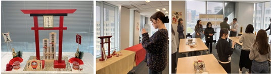 当日ウォーキング参拝に行けなかった社員も、オフィス内に設けた神社やおみくじで今年一年の健康を祈願しました。また、参拝後は社長より祝い酒が振る舞われ、仕事初めにともに働く仲間との交流を通じて、前向きに仕事に向かう英気が養われました。