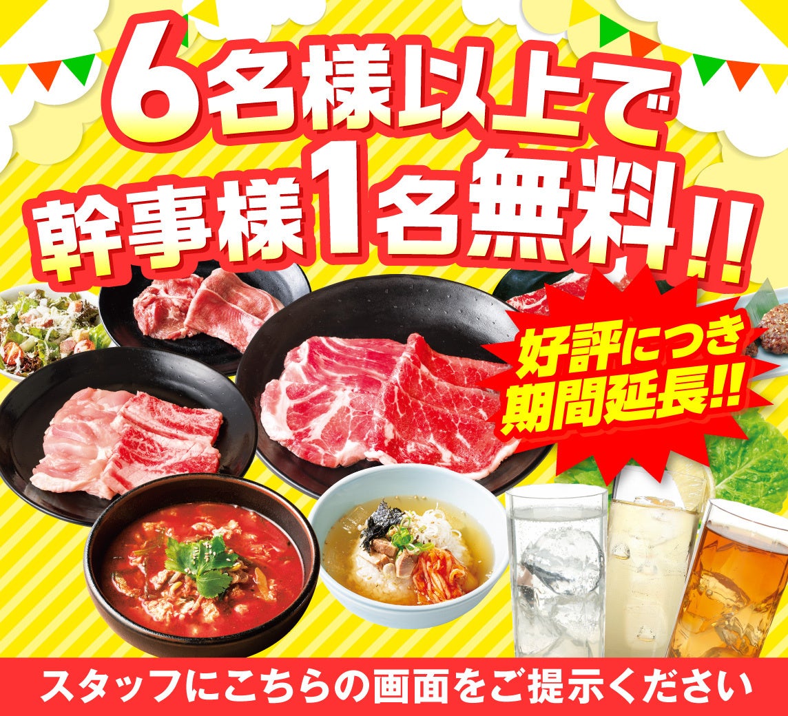■ 幹事さん必見【6名様以上でコース1名様無料】6名様以上でコースをご利用いただくと、幹事様1名分が無料に。