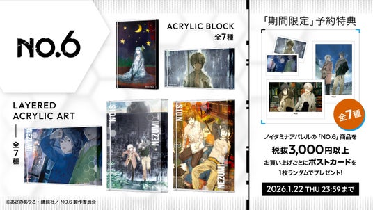 バナナスピリッツ株式会社(本社:東京都港区 代表取締役:米山博)が運営するフジテレビ深夜アニメ枠“ノイタミナ”から生まれたアパレルブランド「ノイタミナアパレル」は、TVアニメ「NO.6」のグッズを2026年1月8日(木)より販売開始いたします。