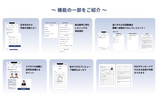 本機能により、スマートフォンだけでプロ仕様の履歴書を作成でき、PC環境が限られがちな現場スタッフでも、移動時間や休憩時間を活用してスムーズに応募準備を進めることが可能になります。