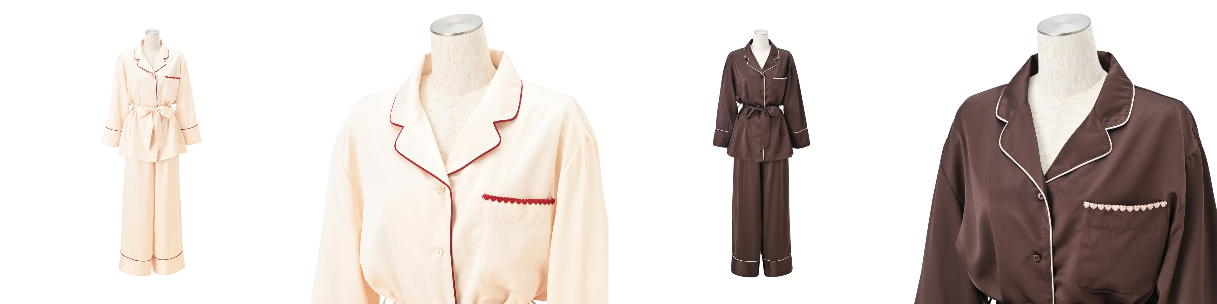 【商品名】ヒアルロン酸加工 ハートラインサテンパジャマ