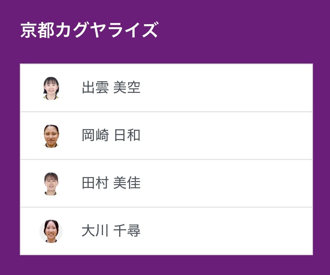 ノジマTリーグ 2025-2026シーズン 公式戦 1月11日(日)開催 九州カリーナ vs 京都カグヤライズのベンチ入り選手を発表いたします。