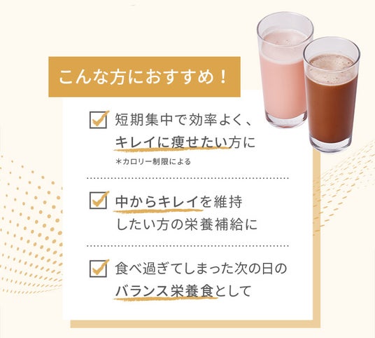 100%WPI(ホエイプロテインアイソレート)のプロテインダイエットで、賢く、効率よく、健康的に理想の身体へ。食事にプラスすることで不足しがちな栄養も同時に補給できます。