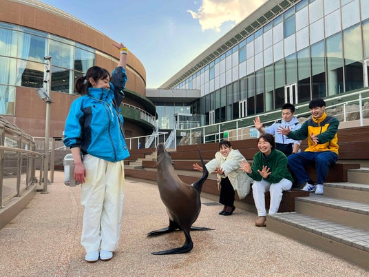 生きものたちとの近さを体感できる屋外エリア「オーシャンテラス」で開催している「アシカのおさんぽタイム」では、エリック・カールの代表作品のひとつである「できるかな?あたまからつまさきまで」のストーリーになぞらえて、カリフォルニアアシカがさまざまなパフォーマンスにチャレンジします。