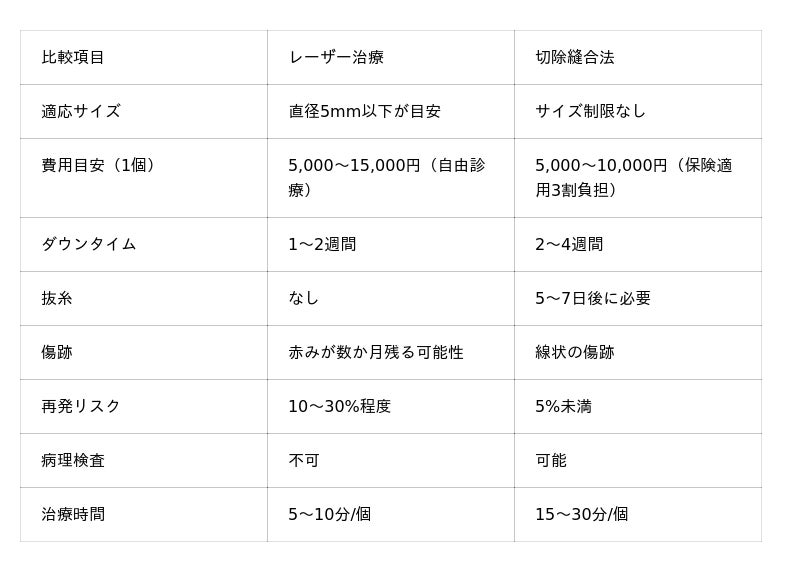 レーザーと切除法の違い・ダウンタイム・再発リスクを皮膚外科医が徹底解説