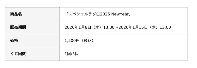 「スペシャルラグ缶2026 NewYear」2026年1月8日(木)13:00より販売開始