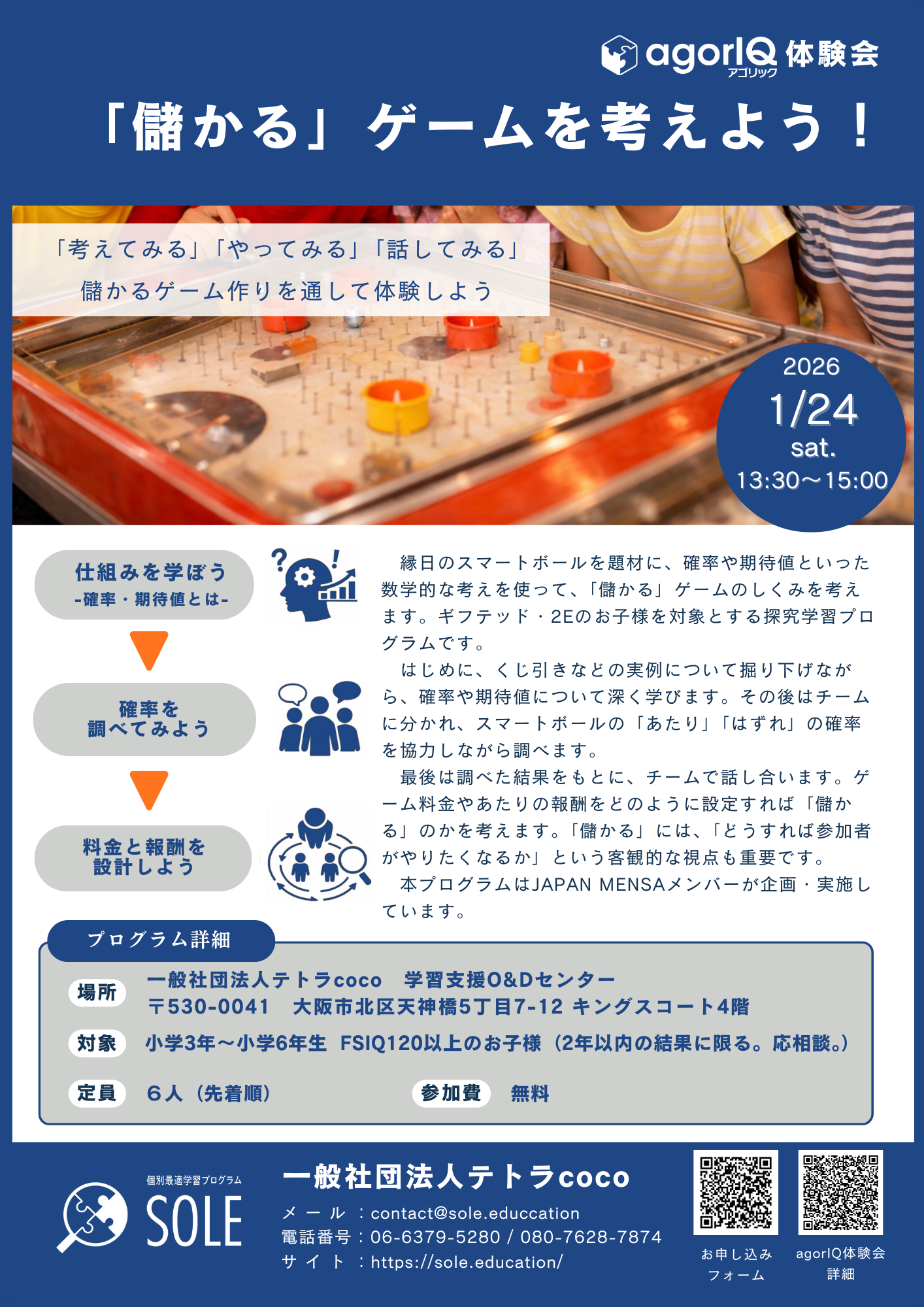 2026年1月24日(土)には、体験会『「儲かる」ゲームを考えよう」を実施予定です。