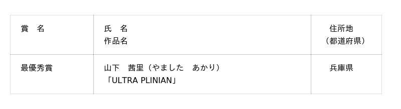 【最優秀賞/山下 茜里「ULTRA PLINIAN」】