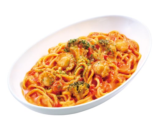 ファーストキッチンオリジナルのトマトの酸味とガーリックの風味が楽しめるトマトソースに、コクのあるホワイトソースを加え、クリームパスタにアレンジしました。濃厚な旨味が楽しめる青森県陸奥湾産ホタテや、ホワイトソースと相性抜群のブロッコリーをトッピングした、寒い冬にピッタリの贅沢なクリーム生パスタです。