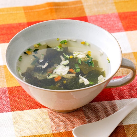 島根県産天然わかめに、国産のにんじん・玉ねぎ・キャベツ・大根・ほうれん草・かぼちゃ・ねぎを使用。素材の味をしっかり感じられる本格スープです。