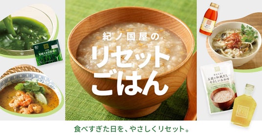 紀ノ国屋公式オンラインストアでは、「食べすぎた日を、やさしくリセット。心もからだも軽やかに」をテーマにした特集を公開しています。和風のだしで仕立てた五穀おかゆをはじめ、野菜が7種入ったわかめスープ、からだのリセットに最適な有機大麦の若葉を使った青汁など、からだをやさしく労わるラインアップをご用意しています。ほっと一息つける飲み物や、消化にやさしい食事を味方に、ゆるやかにコンディションを整えて、新たな年を過ごしませんか。