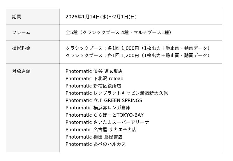 ぜひお近くのフォトブースで撮影をお楽しみください。